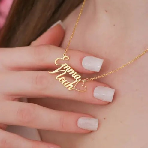 This one-of-a-kind Gold Two Name Necklace is a stunning piece of jewelry that is designed and handcrafted in the UAE to elevate your everyday look.